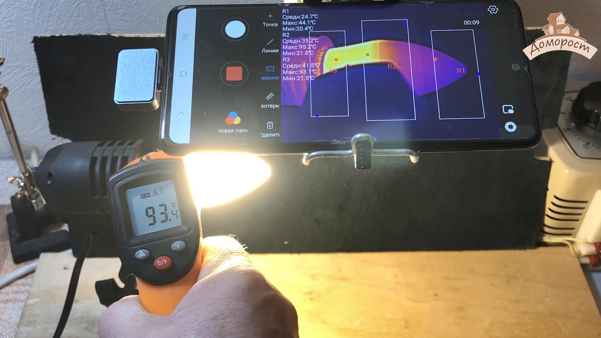 Температура колбы — 93 градуса по Цельсию, корпуса — 44. Очень серьезный нагрев. Уверенности в том, что эта лампа проработает долго — нету.