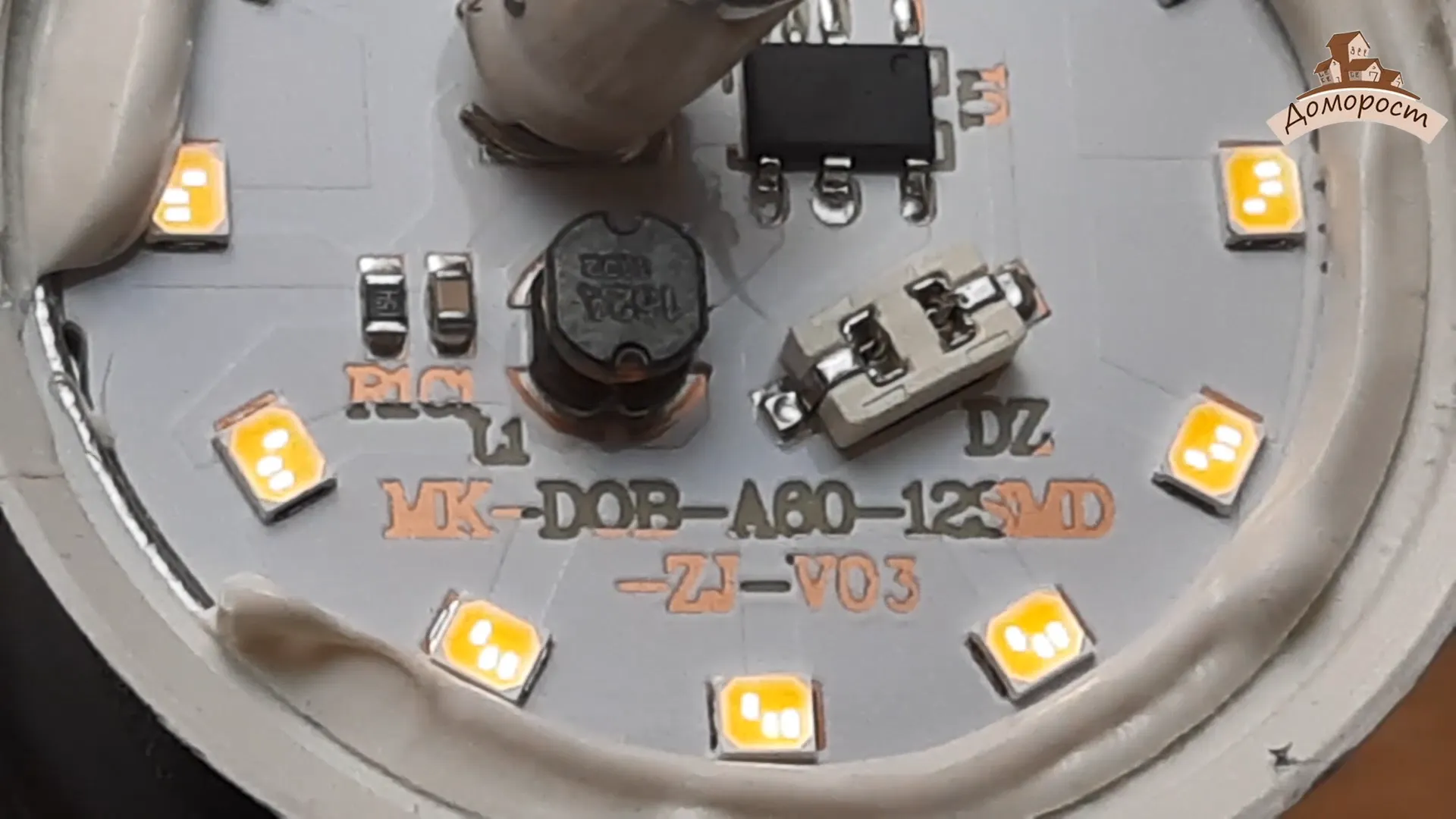 Что еще могу здесь отметить? Достаточно неприятно было увидеть, как огромное количество клея герметика наползает на корпуса светодиодов. Да, вот такой недостаток в сборке у лампы Voltega есть.