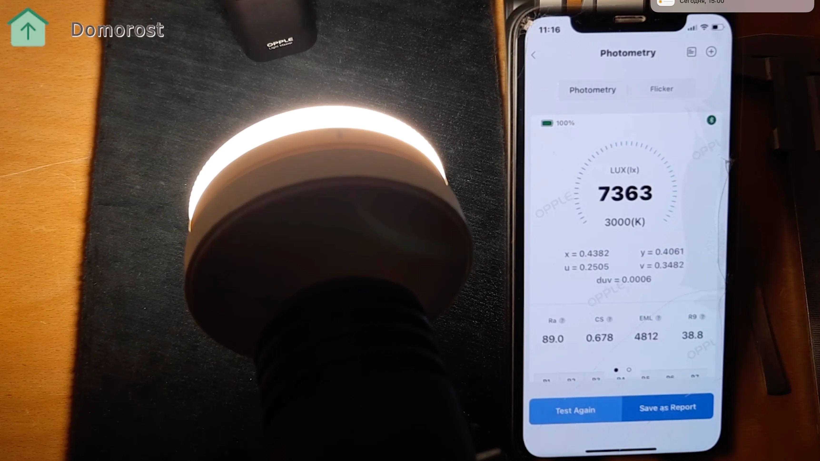 Все очень даже прилично! Кажется впервые мы наблюдаем точное совпадение цветовой температуры! Не думал что такое бывает. Свет от лампы без примеси, отличная цветопередача.
