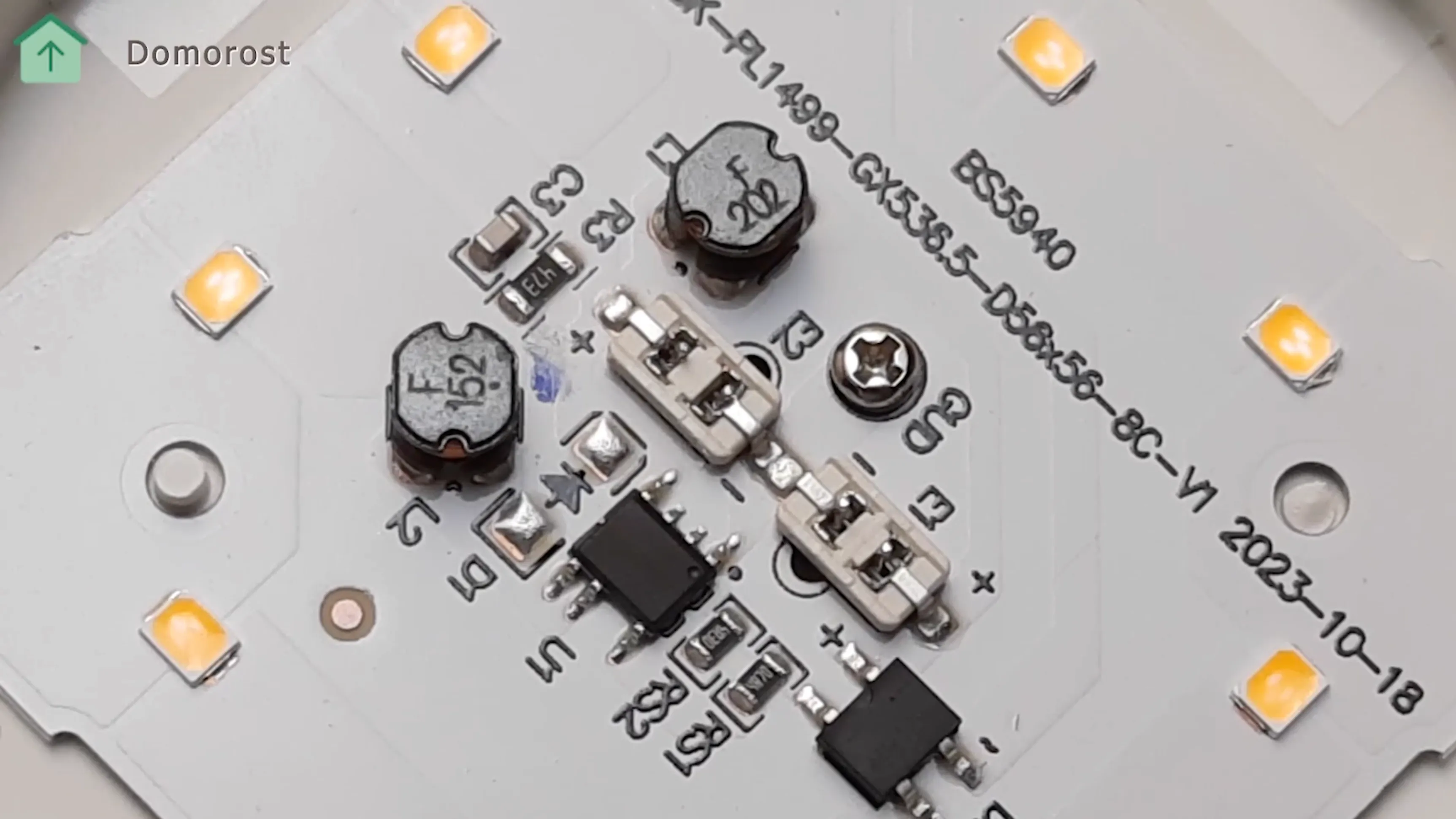 Под рассеивателем на диодной плате нас ожидает 8 корпусов светодиодов. Все корпуса соединены последовательно.