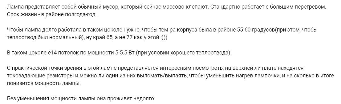Как итог, я считаю данную лампу достойной покупки, хоть цоколь е14 и не самое лучшее решение для теплоотвода.