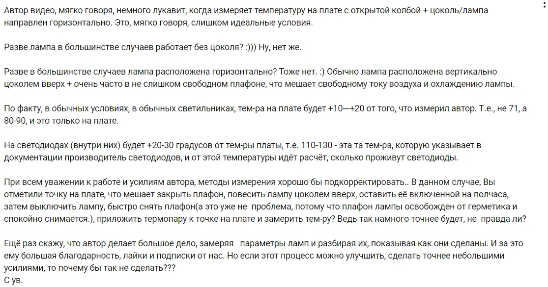 Коллеги, это не критика. Просто мы видим самую обычную лампочку за немаленькие деньги. В чем ее преимущество перед другими "производителями" - неясно.