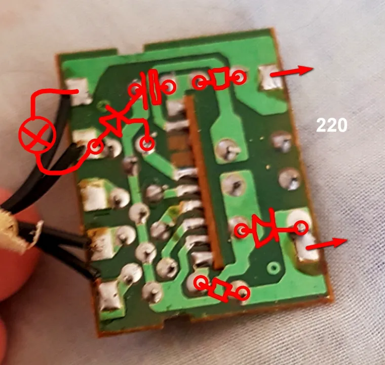 @ALEXLED а там обозревать особо то нечего . Одна лампочка с размыкателем , остальные обычные накаливания. Теперь после разбора елки соберу из двух одну и делов то. Вторая станет донором для первой . Им уже лет по 10 каждой . Помню покупал на рынке их зимой в мороз . Говорю продавцу если не сгорят на морозе, то куплю . Он включил их промерзшие и все засветилось . Значит крепкие подумал я.... кстати провода если с наконечниками , то будет надежнее. Правда обжимник нужен специальный , но можно и впаять провод и потом к плате припаять