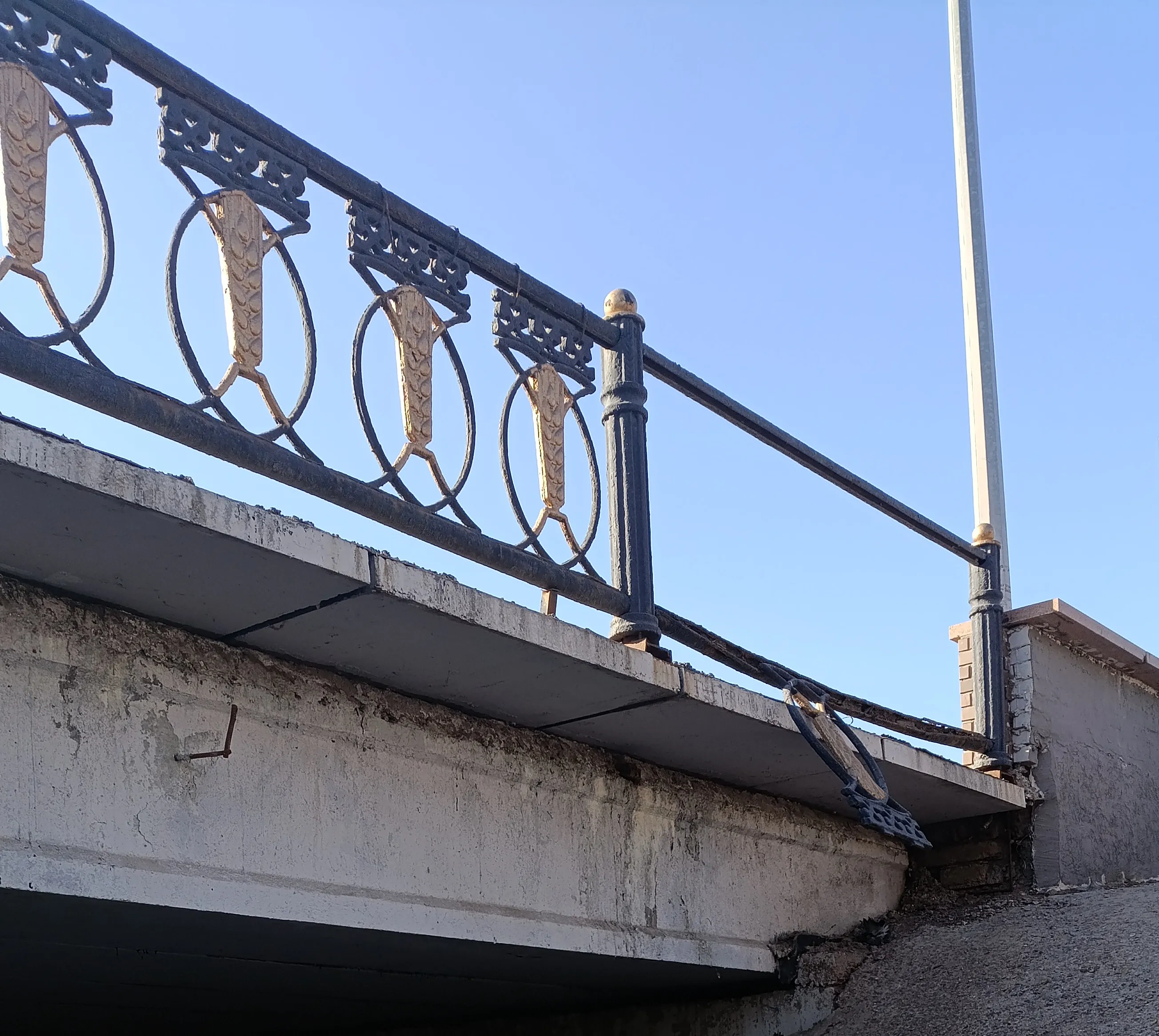 Всем здравствуйте . За 30 лет независимости Казахстана догнили чугунные детали ограждения автомобильного моста . Детали отлиты похоже еще во времена СССР . На новое денег нет , но вы держитесь .