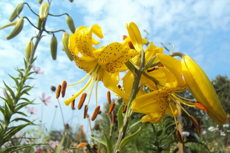 Лилия сорта «Цитронелла» достигает 130 см в высоту. Чалмовидными лимонно-желтыми цветками, на которых присутствуют мелкие темно-пурпурные пятнышки, лилия может порадовать в середине июля. Цветок источает тонкий аромат.