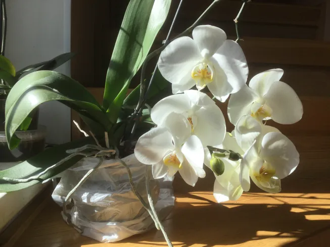 Поставила на пол, чтобы получше рассмотреть все цветоносы.