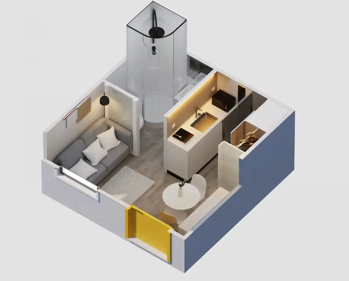 Компания Boxabl придумала небольшой, но уютный складной домик Baby Box, который легко может собрать один человек без помощи специалистов и инструментов. Площадь домика 11 кв.м.