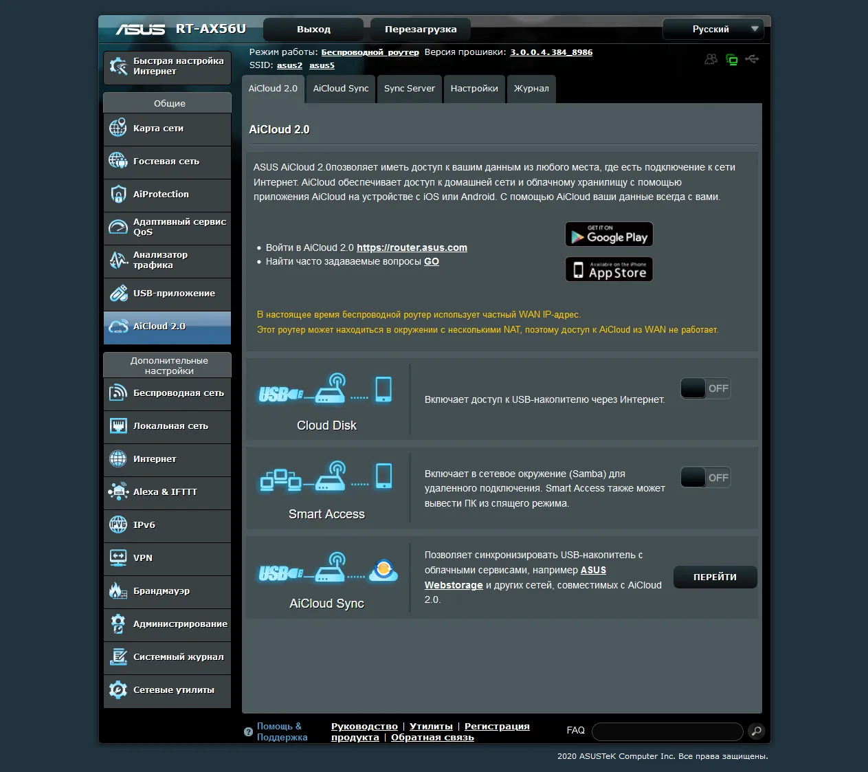 Иногда бывают мелкие глюки. Например, пару раз было, что интернет на всех устройствах пропал, хотя Wi-Fi сеть видна. Захожу в админку - показывает, мол, кабель WAN не подключен. Хотя физически все в порядке. Перезагрузка сразу чинит ситуацию. Грешу на прошивку, что-то в ПО могло глюкануть. Благо случалось это всего два раза за несколько месяцев. Но неприятно, особенно если в этот момент ты был на важном звонке по работе. В отзывах я встречал упоминания подобного - видимо, не я один. Надеюсь, ASUS поправит такими обновлениями, либо придется мигрировать на Merlin прошивку, как советовали мне ребята на форуме.