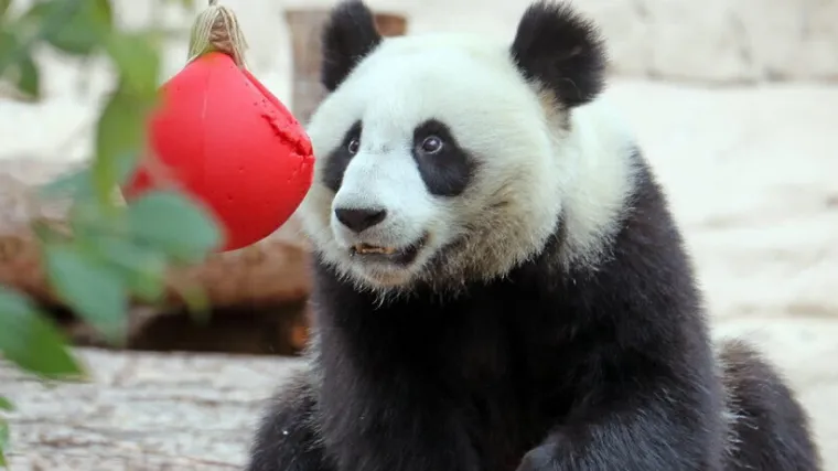 В столичном зоопарке самец панды по имени Жуи нарисовал своей подруге Диндин очередной подарочек к 8 марта. Это картина в форме цветочка. Интересно, что Жуи регулярно брал уроки по рисованию, и теперь довольно уверенно держит кисть из бамбука в своей лапе, вращает и творит, причем без помощи кипера. На «волшебной полянке» Диндин, которая находится в вольере, есть ледяные грибочки, которые специально подкрасили соком из овощей и декоративными цветочками. Там же расположились панда-кейки, которые мишки очень любят. Это лакомство готовят для них из риса, кукурузы и соевых бобов, скрепляя это все рапсовым маслом.
