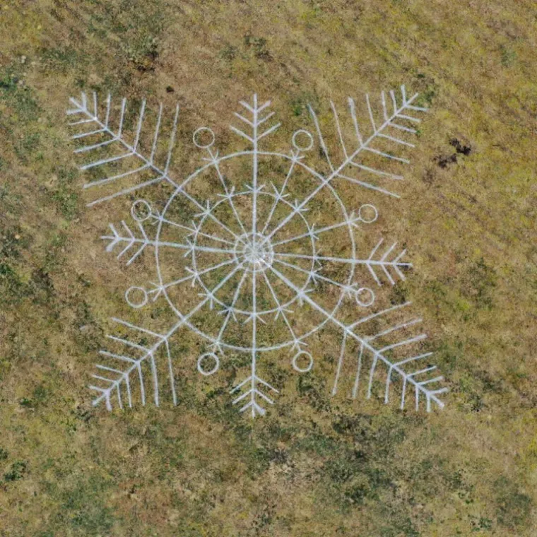 Художник Илья Демченко вместе со своей командой решили нарисовать громадную снежинку в поле размером 40 м. Он выразил надежду, что это вызовет снег, которого все так ждут. На самом деле это не первое произведение искусства парня. В 2018 году под Серпуховом была нарисована свинья со снежинками, где еще была надпись «С Новым годом!». Как оказалось, у Ильи и его команды это ежегодная традиция. В этом году задача усложнилась, так как не было снега. Поэтому для рисунка они применили меловую краску на водной основе. Рисунок получился за 3 часа. Если не пойдет сильный дождь, то он сохранится недели две. Илью уже хорошо знают в Подмосковье как художника. Также он увлекается граффити.