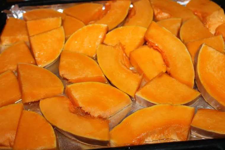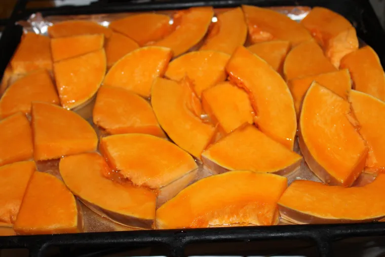Тыкву помыть, удалить мякоть с семечками. Нарезать произвольно.