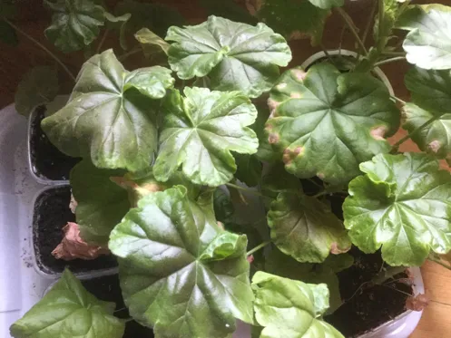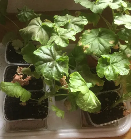 Что-то случилось с кустиками герани( пеларгонии). Придется почитать литературу, чтобы диагноз поставить.