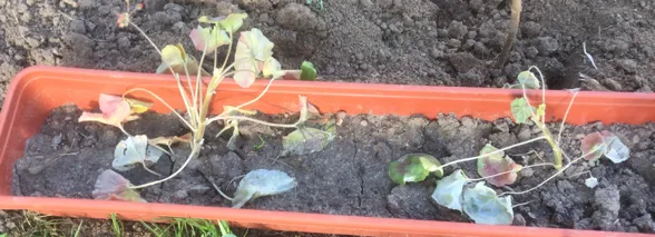 К сожалению, те кустики, которые пересадила не смогли пережить такую погоду. Видимо замерзли. Вот ведь неудача. Смотрите что стало с моей роскошной рассадой.