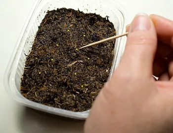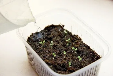 Как сеять Наполните контейнер грунтом приблизительно на ¾ (высота грунта не более 3-4 см). Увлажните почву и тщательно разровняйте поверхность. Разместите семена или гранулы на поверхности грунта. Для этой цели удобно использовать обычную зубочистку. Смочив один ее конец, легко подцепить семя и перенести в нужное место. Равномерное распределение семян облегчит пикировку. В одном контейнере на 250 мл можно посеять от 5 до 15 семян. Не присыпайте семена грунтом и не опрыскивайте их из пульверизатора! Закончив посев, закройте контейнер крышкой. До момента формирования семядольных листьев крышка должна быть закрыта, что уменьшит испарение и позволит молодому неокрепшему растению быть во влажной среде.