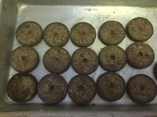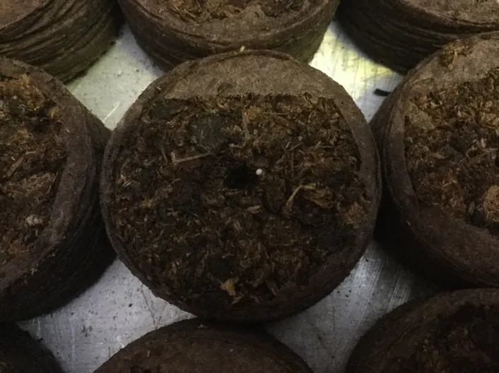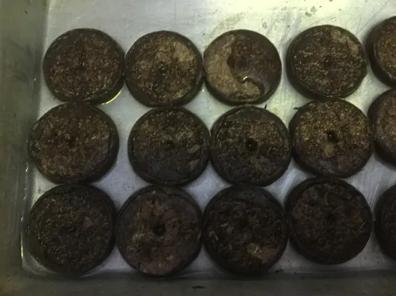 Следим за влажностью грунта После снятия крышки почва начинает быстро сохнуть, поэтому необходимо следить за ее состоянием и не забывать увлажнять при необходимости. Пересохший торфяной грунт изменяет цвет, делается более светлым. Внимательно следите за состоянием грунта, его пересыханиеможет свести на нет все ваши усилия. На фото ниже показано как выглядит пересохший, осветленный грунт. Нормальная влажность на этом этапе составляет 50-60%