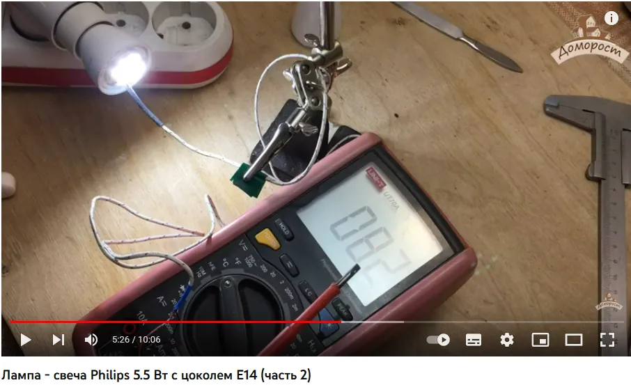 Так у неё диодная плата греется без рассеивателя 82 градуса. Рассеиватель добавит ~ еще 12%. Итого у свечки 5,5 под колбой больше 90 град.