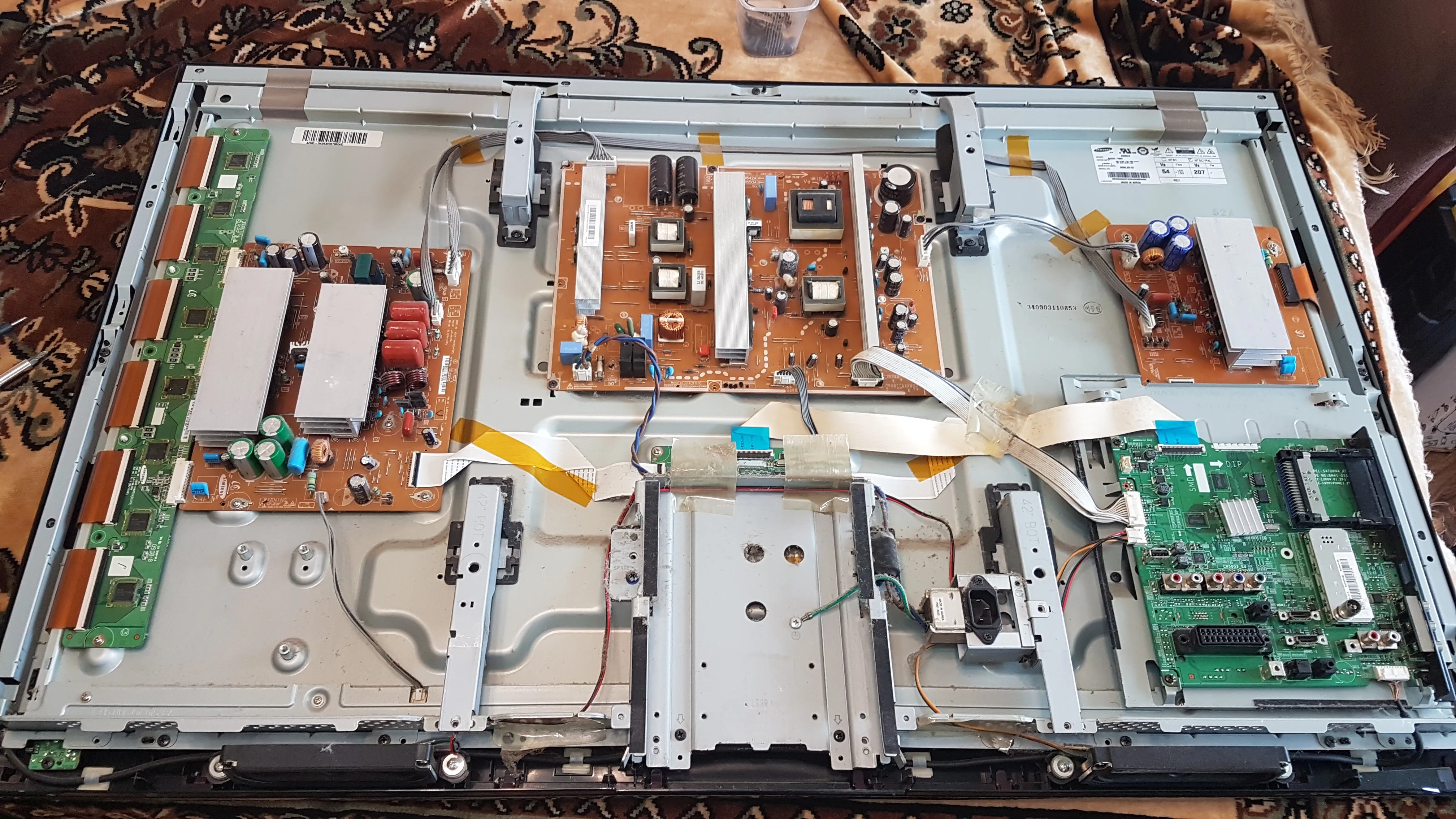 Тут все платы исправные. Все целое. Рабочее. Спасибки чьим то кривым рукам за запчасти для моего телека всего за 2000 рублей с авито.