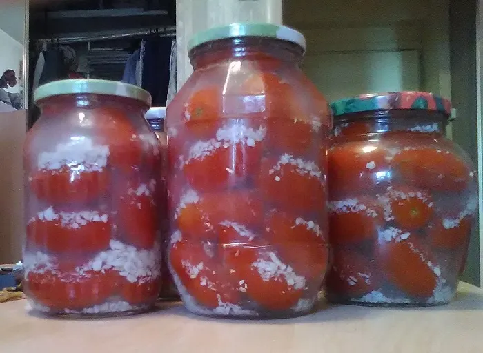 Этот рецепт дала мне свекровь. Получается очень-очень вкусно. Пока не было ни одного человека, которому б такие помидоры не понравились.