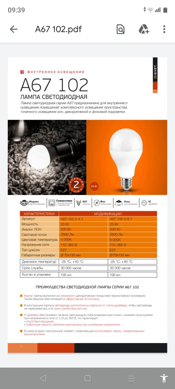 Посоветуйте лампу светодиодную е27 20вт