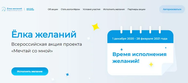 16 декабря прошла первая такая программа в Дмитровском детском доме-интернате, в Мытищинской школе музыкального воспитания, а также в Московском областном хосписе. Вели программу в хосписе Дед Мороз и Снегурочка. Кроме того проект уже состоялся в интернатах «Преображение», «Вдохновение», «Семья и дом». 17 декабря мероприятие запланировано в Филимонковском детском доме-интернате для умственно отсталых детей-сирот и детей, оставшихся без попечения родителей и в ГКУ Московской области «Доверие». 18 декабря – в Уваровском детском доме-интернате, а также в ГКУ Московской области «Созвездие». Участниками мероприятия стали известные артисты, блогеры, куда вошли Александр Асташонок, Максим Свобода, Кристина Кошелева, братья Сафроновы, финалисты шоу «Голос» Анастасия Бейнар, Буша Гоман и пр. Ссылка на проект https://xn--80aanbeohciex.xn--p1ai/.