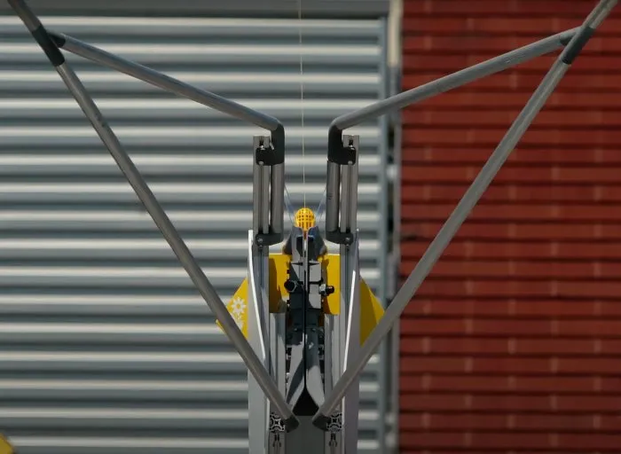 Для такого устройства достаточно площади размером с одно парковочное место. При этом вокруг дрона остается много места, чтобы погрузочные работы осуществлялись без помех. В устройстве предусмотрена V-образная вилка на высокой штанге, задача которой поймать крюк, который будет спускаться на тросе с дрона. Он движется по специальному желобу, цепляя на выходе ушко пакета, где лежит посылка. Затем крюк поднимается и дрон отправляется в путь.