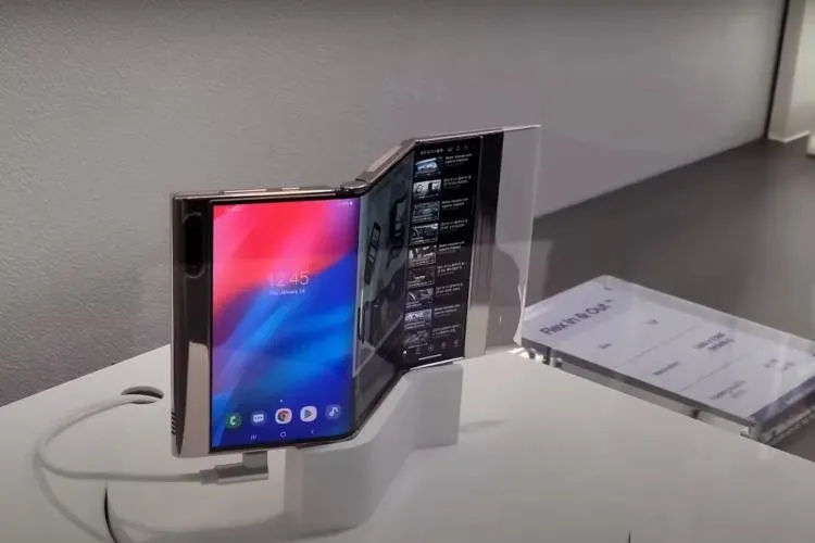 Презентация прототипа смартфона с S-образным дисплеем компанией Samsung в первый раз прошла на мероприятии Display Week 2021 в мае. Повторно посетители выставки iMiD 2021 в Китае в августе 2021 года смогли увидеть это необычное устройство. Смартфон представляет собой конструкцию из 3-х частей на двух шарнирах. Есть дисплей, который складываться как внутрь, так и наружу. Размер гибкого OLED-дисплея - 7,2-дюйма. Пока разработчики больше ничего не говорят о начинке смартфона и его функциях. Однако можно заметить несколько кнопок и две камеры. Также в презентации можно увидеть, что 3 условных дисплея позволяют открывать сразу несколько приложений.