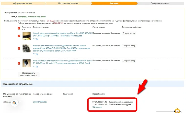 Продавец с Aliexpress отменил заказ . Полагаю это связано с беспорядками в Казахстане. Обычно так и происходит. Страны , где беспорядки , теряют инвесторов и с ними никто не хочет иметь НИКАКИХ ДЕЛ ! Все это подрыв бизнеса и экономики в целом .