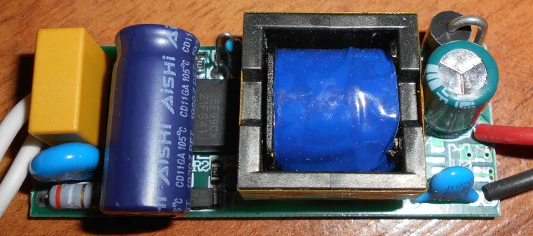 6 модулей по 3 W каждый , а драйвер от лампы ЭРА 17 W . Разбор лампы тут: https://domorost.ru/topic/2742/%D0%BB%D0%B0%D0%BC%D0%BF%D0%B0-%D1%8D%D1%80%D0%B0-%D0%B4%D0%BE%D0%BB%D0%B3%D0%BE%D0%B6%D0%B8%D1%82%D0%B5%D0%BB%D1%8C/2 Без переделки 215 Вольт получилось на выходе . Видимых пульсаций светового потока нет