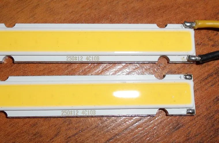 Но их нет под рукой , чтоб экспериментировать. Зато есть другой конструктор и никак руки не дойдут до него . Два модуля на 12 Вольт размером 250х12 мм мощностью 10 W