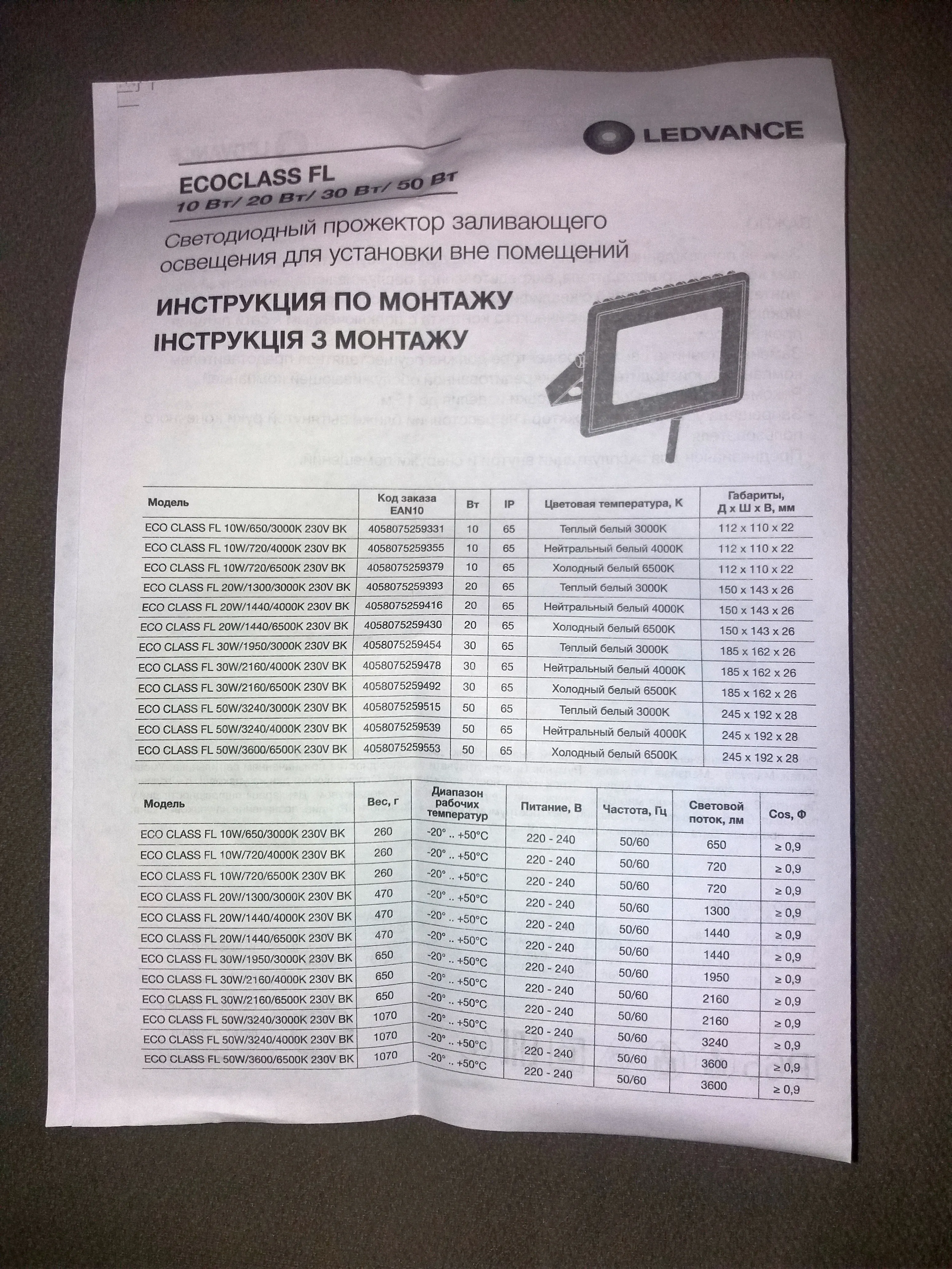 Всем здравствуйте. Сегодня прожектор LEDVANCE, с заявленной мощностью 30 Вт.