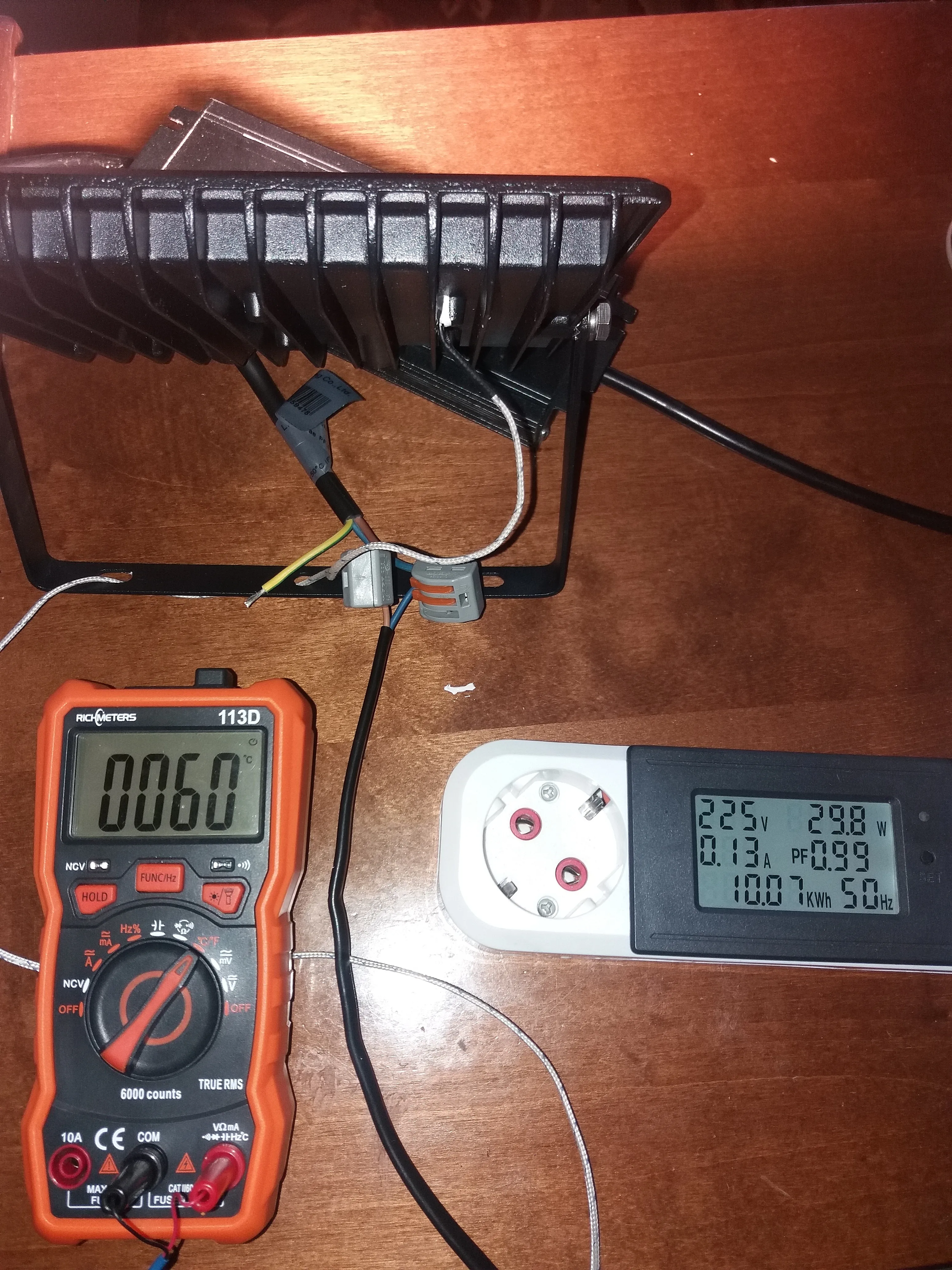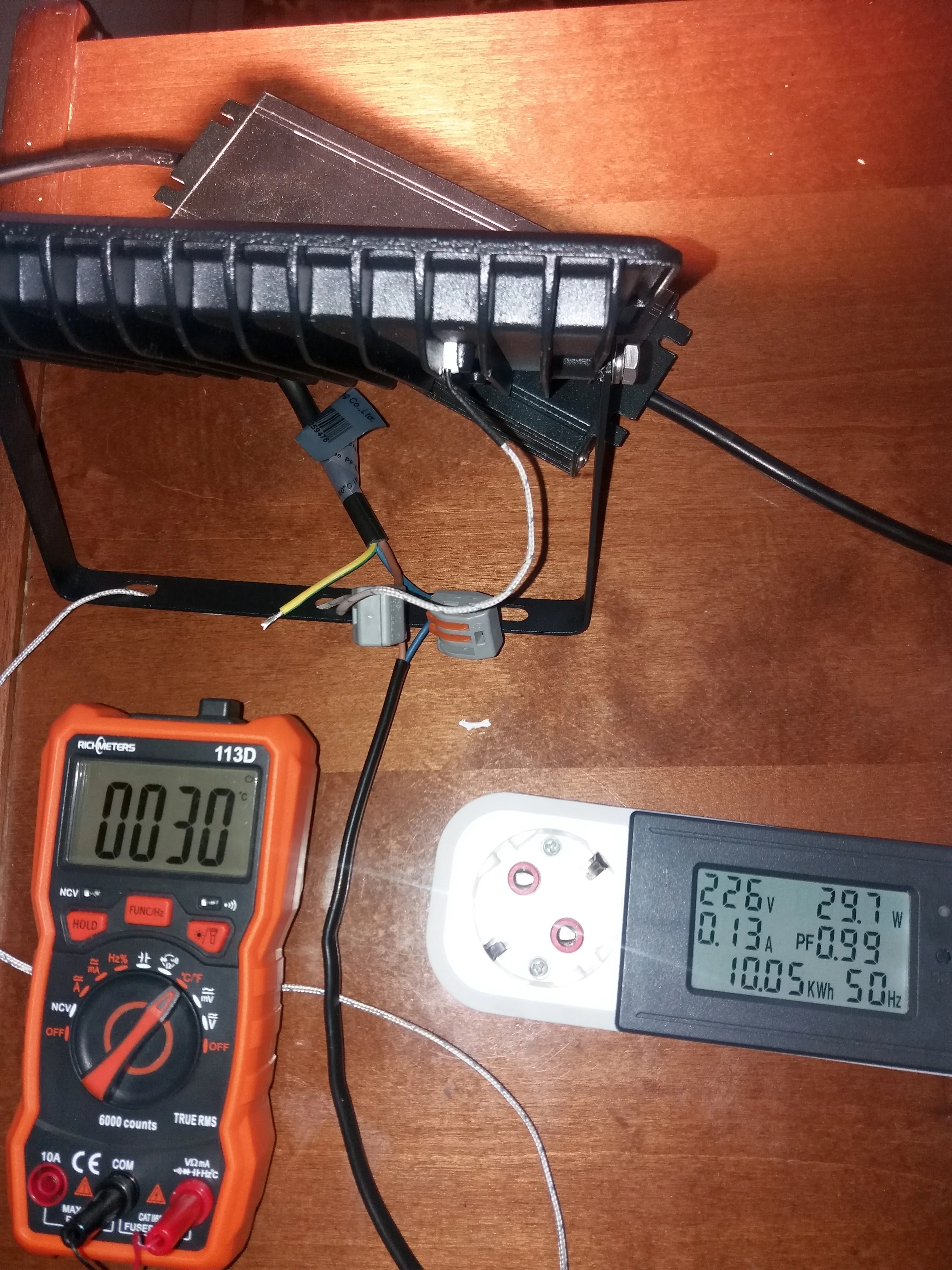 Тест температуры. При включении потребляемая мощность 29,7 Вт .