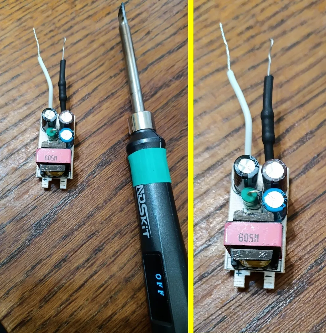 Даже электролит на выходе не забыли, он в сине-голубой усадке...