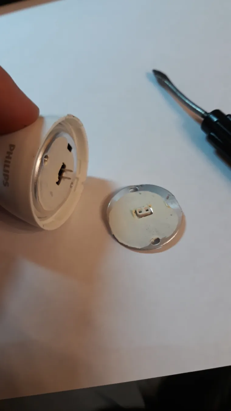 Ну придется разбирать лампу дальше, назад дороги нет... благо у Philips плата прикручена на двух болтиках и легко снимается...