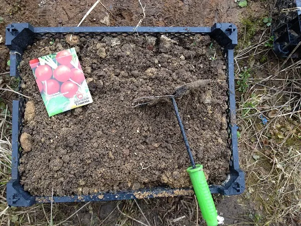 Бродила я сегодня (10.04.2016) по саду и тут меня на подвиги потянуло. Решила редиску посадить в качестве эксперимента. Никогда такого не делала. Теплицы у меня нет, земля холодная, а вот ящик с землей, в котором виола не взошла остался, стоит , пропадает зря. Решила я взять его за основу. В него буду сажать редис. Чуть-чуть. Семена скороспелые. Земля удобренная. Прорыхлила землю