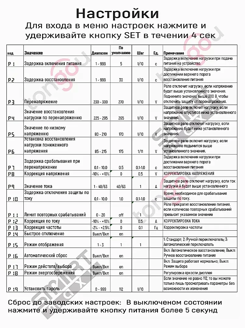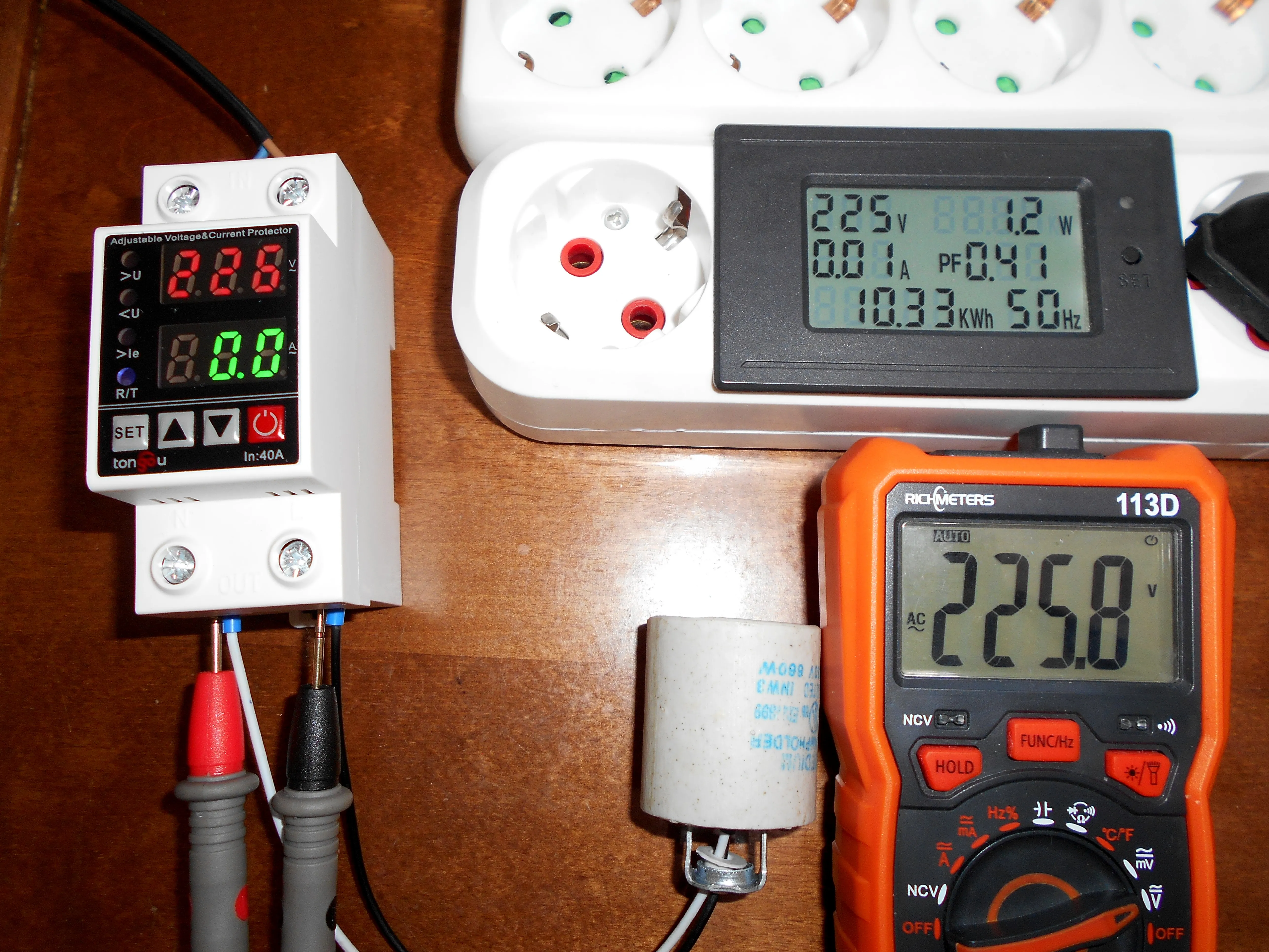 Устройство должно защитить бытовые электроприборы от повышенного или пониженного напряжения в сети , а также есть защита по току до 40 А. Показания напряжения и тока можно откорректировать через меню реле . Потребляемая мощность самого реле 1,2 Вт.