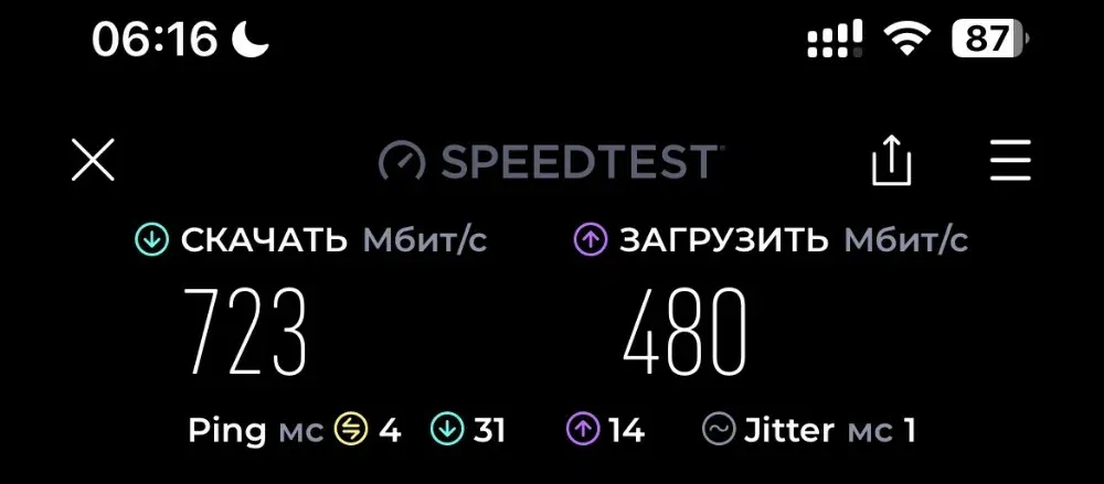 В использовании - скорость и покрытие. HAP ax3 - это Wi‑Fi 6 (802.11ax) роутер AX1800. Для меня это первый опыт с Wi‑Fi 6, и разница заметна. Все современные устройства (ноутбуки, смартфоны) сразу подключились по Wi‑Fi 6. В пределах одной комнаты скорость по 5 ГГц почти как по кабелю: мой тариф 500 Мбит/с – по беспроводному выходит близко к этому, в районе 450–480 Мбит/с без просадок. В соседней комнате через стенку скорость чуть падает, но всё равно ~300 Мбит/с, чего за глаза хватает и для 4K-видео, и для видеозвонков. В самой дальней комнате (две стены) 5 ГГц сигнал уже слабее - страницы грузятся, видео летает, но скорость ближе к 50–100 Мбит/с. Зато 2.4 ГГц сеть от этого роутера бьёт очень далеко - старый TP-Link там еле ловил, а с MikroTik на 2.4 ГГц я даже на лестничной клетке поймал сигнал! Правда, на 2.4 ГГц канал забит соседями, поэтому пользуемся им редко. В целом покрытие Wi‑Fi меня устроило: 3-комнатную квартиру роутер “пробивает” полностью, хотя чуда ждать не стоит - через бетонные стены 5 ГГц у любых устройств теряет мощность. Возможно, у некоторых конкурентов антенны чуток сильнее, но мне хватает. Плюс, если очень нужно, у ax3 антенны съёмные = энтузиасты на форумах пишут, что меняли их на более мощные и добивались лучшего сигнала. Я пока не заморачивался с этим.