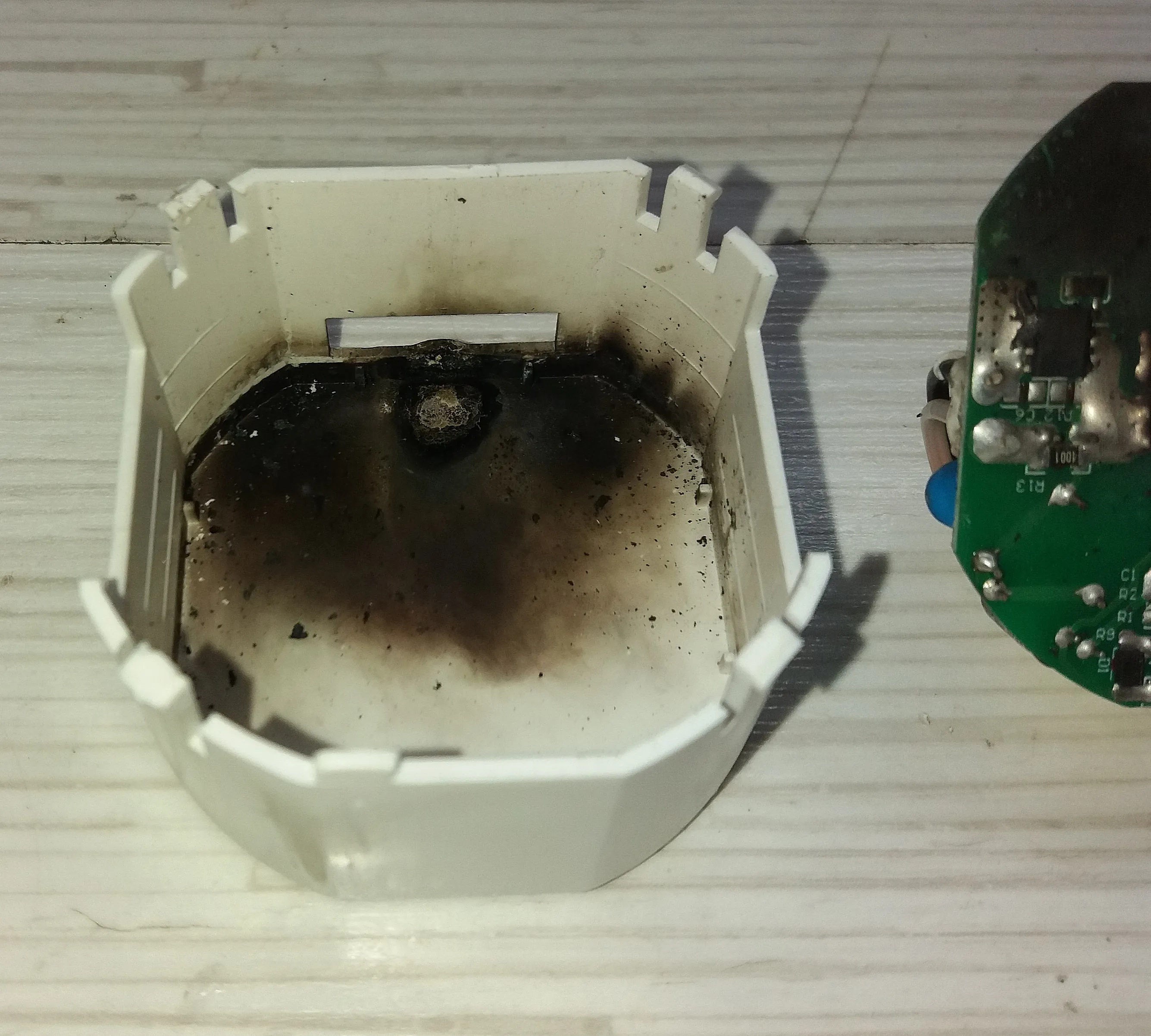 Вариант с перенапряжением встроенного ключа - отметается, так как на "стоке" предусмотрен RCD снаббер, который гасит выбросы. Что касается перегрузки ключа по току - то это тоже исключено, так как к выводу "CS" подключен сенсорный резистор. Ну и последний вариант - это КЗ по выходу, тоже отметается, так как если на выходе будет КЗ, то на выводе VDD (питание микросхемы) будет ноль Вольт и микросхема отключиться, и она будет периодически запускаться через высокоомный резистор. Так что, ставлю на перегрев. А у вас какие мысли?