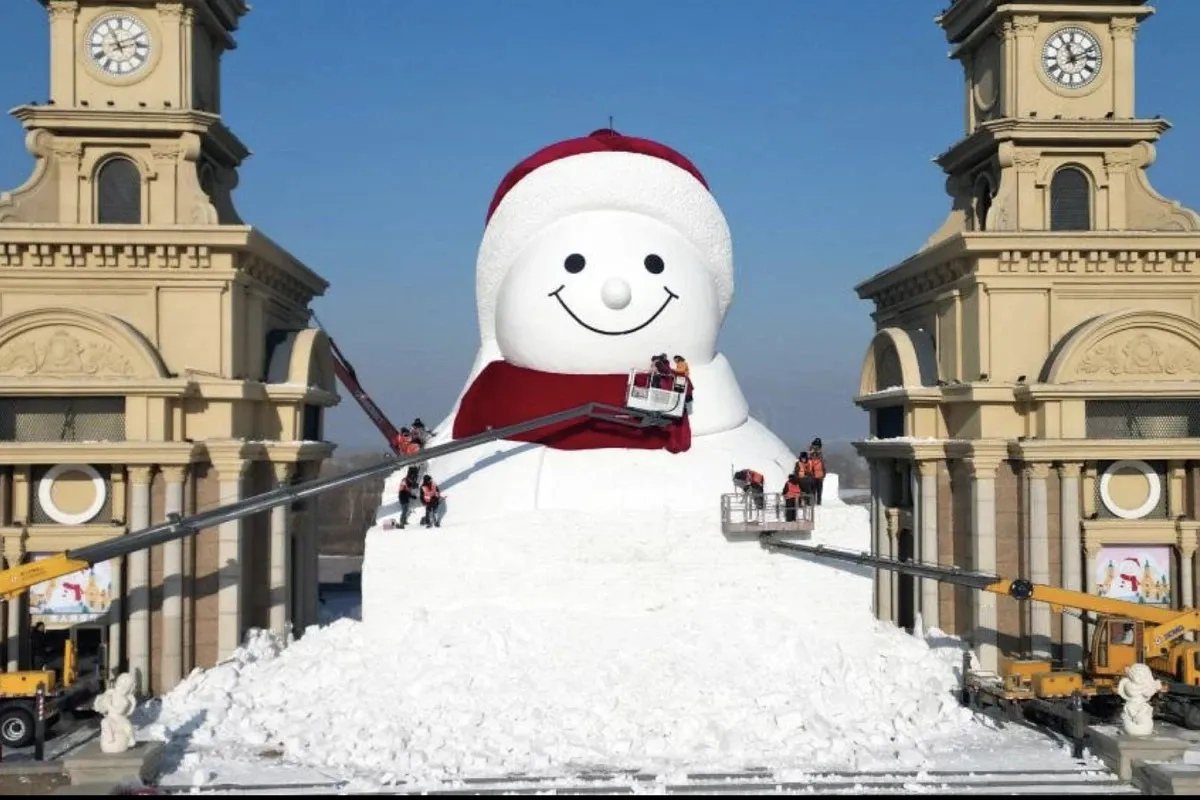 В Харбине, столице китайской провинции Хэйлунцзян, этой зимой появился новый символ сезона — самый крупный снеговик в истории страны. Для города это уже не разовая акция, а устоявшаяся традиция: снежных гигантов здесь лепят ежегодно, начиная с 2019 года. Харбин давно превратился в мировую витрину зимнего туризма — именно здесь расположен крупнейший на планете парк ледяных и снежных инсталляций Ice and Snow World. В прошлом сезоне его посетили около 100 миллионов человек, что принесло экономике города порядка 17 миллиардов долларов.