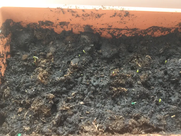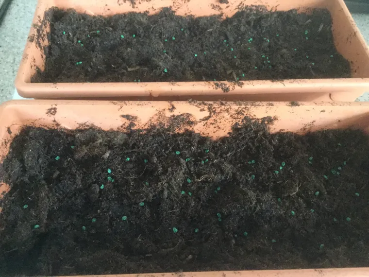 А вот так они смотрятся вместе. Посмотрите как отличается частота всходов. Что это? Плохие семена или я что-то не так сделала?