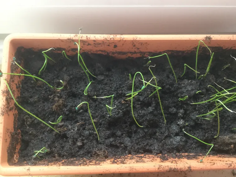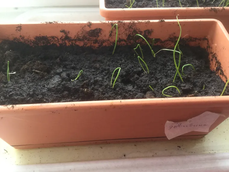 Ура!!!! Лук начал всходить. И даже эксебишн вылез, правда ни в таких количествах как я ожидала.