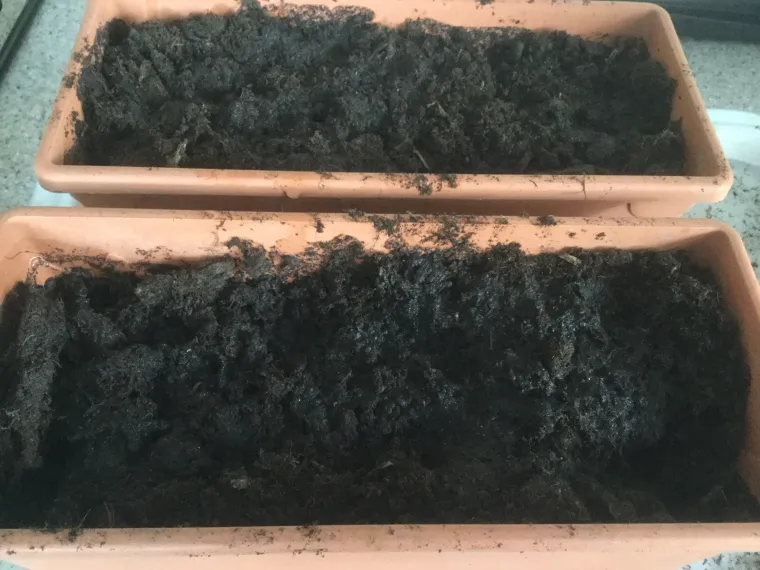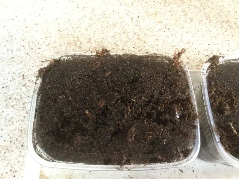 Земля закуплена несколько лет назад и всю зиму простояла в гараже, промерзла как следует. Внесли ее в дом пару дней назад.