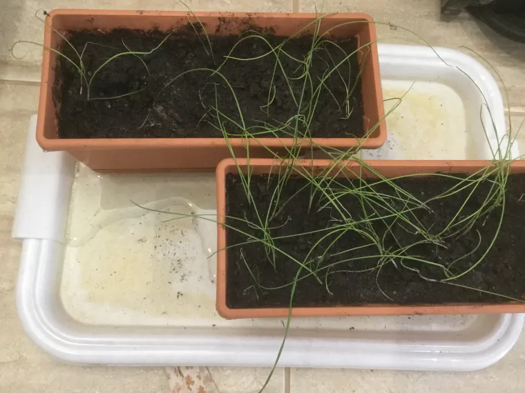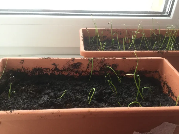 Вот так сейчас , 31 марта, выглядят луки. Стоят горшки в самом холодном помещение. Конечно начинает теплеть и начнется более активный рост. Главное, чтобы не переросли.