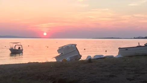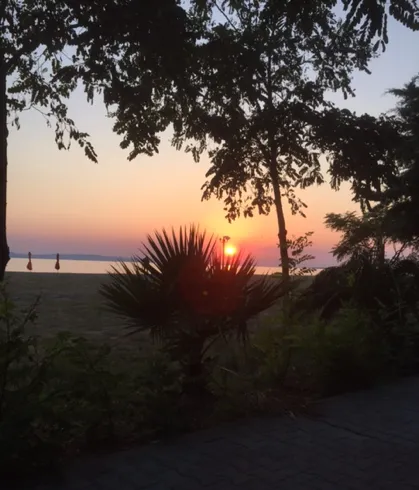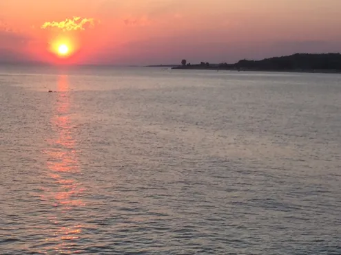 Торони - деревня с одной улицей, идущей вдоль шикарного большущего пляжа. Море в Халкидиках, почти везде удивительной чистоты. Однако Торони это какая то необыкновенная вода, не знаю какмэта передать словами. На пляжах Торони ( а они вдоль всей деревни) можно найти место для купания с любым оттенком цвета морской воды. Просто с любым ...удивительно красивое море. Сейчас тут жарко днём, на пляже спокойно можно сидеть хоть с 8 утра до 8 вечера ( кто большой любитель), всё будет солнце и будет приятно купаться и загорать. Море освежает. Купаться очень комфортно и можно подолгу. Но море не "как парное молоко". Наверное что то около 25 градусов сейчас море. Очень тепло загорать и комфортно нырнуть в море. Не удержусь ещё от одного "заката". Очень они тут хороши ...