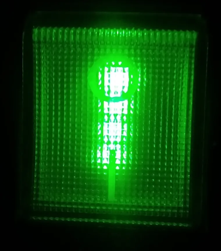 Удалив подвижную часть выключателя и разобрав его, мы наблюдаем, что индикаторная лампочка полностью почернела, хотя и сохранила свою работоспособность. Сам сетевой фильтр находится в эксплуатации полных 7 лет. Аналогичной лампы, или близкой к ней, в наличии не оказалось. Поэтому, сначала было принято решение использовать SMD светодиоды, а затем светодиоды из светодиодной лампы.