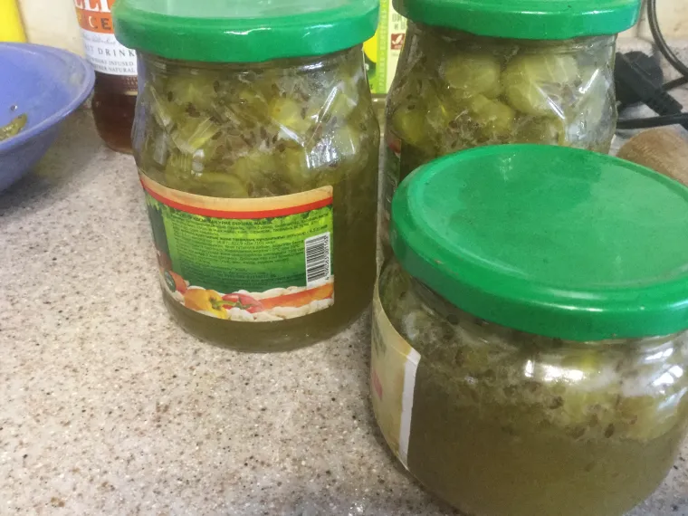 И в конце концов получила 3 баночки крыжовенного варенья. Кстати, оно зажелировалось сразу. Настолько удачно попала в объем, что ничего лишнего не осталось, не удалось попробовать как следует.