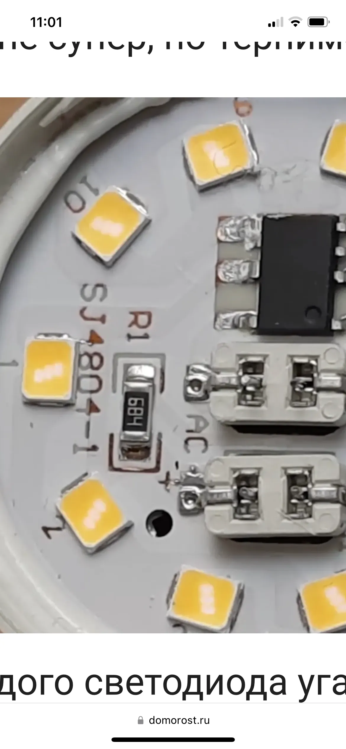 Количество кристаллов определяется по падению напряжения на светодиоде при номинальном токе. Например в лампе "свечка" GP 7 W применили светодиоды на 6 Вольт . Теперь нужно разделить на 3 , т.е. падение напряжение на одном кристалле 3 Вольта . Получается 2 кристалла , соединенные последовательно . Их мы и видим . Если падение на светодиоде 18 Вольт , то получается уже 6 кристаллов. У Вас на картинке скорее всего 9 Вольтовые светодиоды с тремя кристаллами соединенными последовательно , но это не точно .