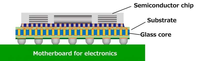 Компания Dai Nippon Printing из Японии представила свою разработку в виде подложки со стеклянным сердечником под названием Glass Core Substrate. Она была создана для изготовления полупроводниковых чипов. Именно с такой подложкой получается более плотно расположить контакты, если сравнивать с подложкой из текстолита.