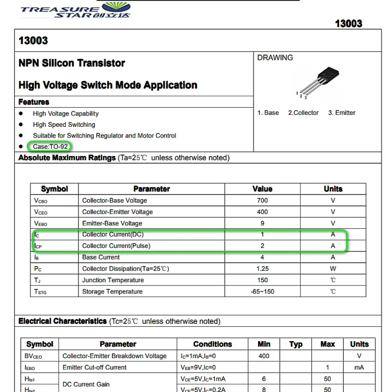 Потребляемый лампой ток 0,1 А . Импульсный ток коллектора в таком корпусе вроде 2 А