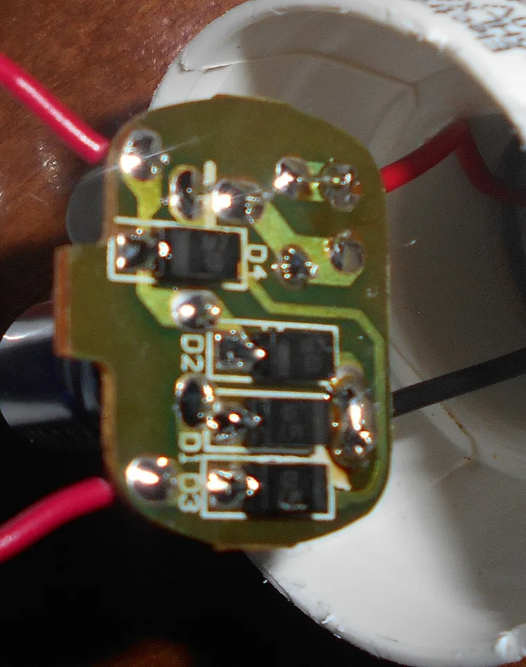 Как вам такое ? На один из выводов кембрик не надели , но он есть и застыл в герметике.