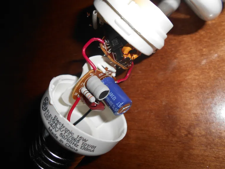 Однозначно, эта лампа лучше Управдома, очень качественная и интересная конструкция, в случае поломки можно поменять ту или иную плату с такой же перегоревшей энергосберегайки. Хотя, вспоминая вчерашнюю историю с хлопушками от Philips, не хочется даже говорить ничего плохого в сторону лампочек Управдом, они в отличии от Philips хотя бы не взрываются в первый день работы, да и вообще за год вышла из строя только одна, и то она тихо и спокойно умерла, без спецэффектов! Ну тут я вижу, что GE это отличная лампочка. Спасибо за разбор! Отдельно отмечу интересный момент насчет сборки - есть вероятность, что таким образом могут забыть положить пластиковую пластину между платами и при включении лампы будет салют :D